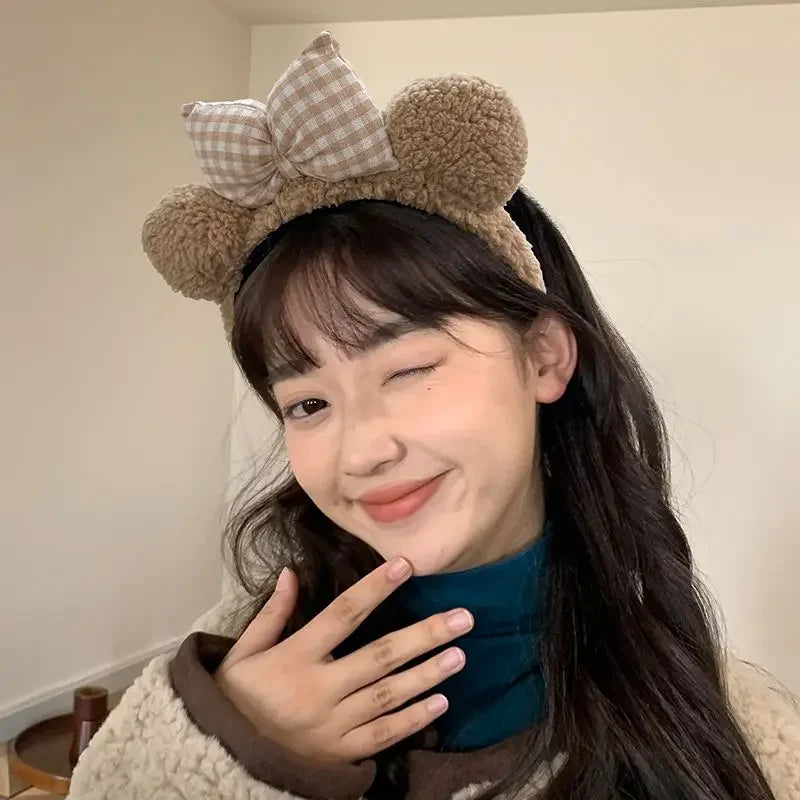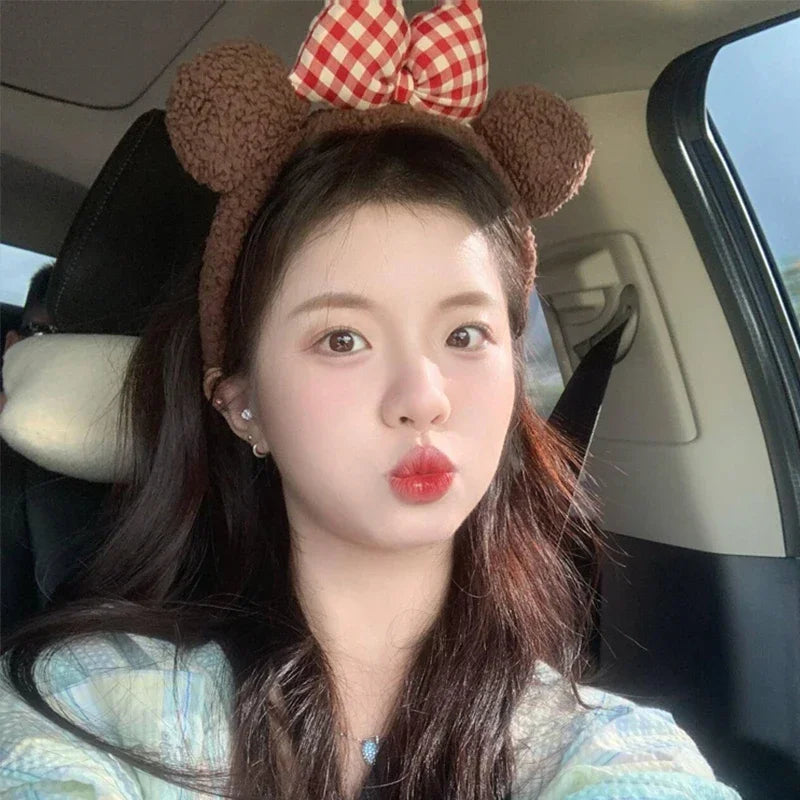Kawaii Bear Ear Headband π»β¨ | Cute Bowknot Hairband for Winter | Plush Cartoon Face Wash Hair Hoop for Girls π