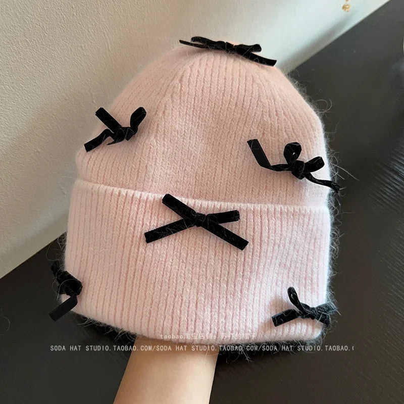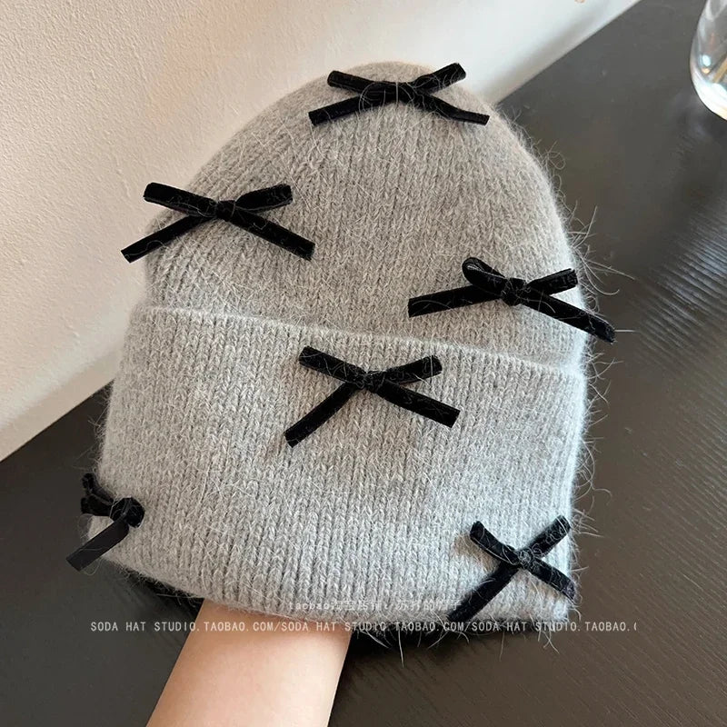 Charming Kawaii Rabbit Fur Velvet Bow Winter Hat πβοΈ - Cozy Ear Warmers for Women! πβ¨
