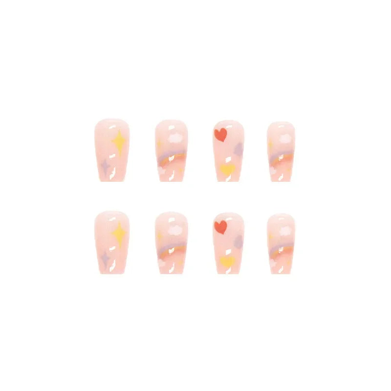 Get ready to dazzle with the 24P Cute Childlike Rainbow Nail Art! These enchanting, full-cover artificial nails bring a burst of joy to every manicure. Perfectly designed for nail lovers and fashionistas alike, these reusable ballerina press-on nails make creating stunning nail art a breeze!