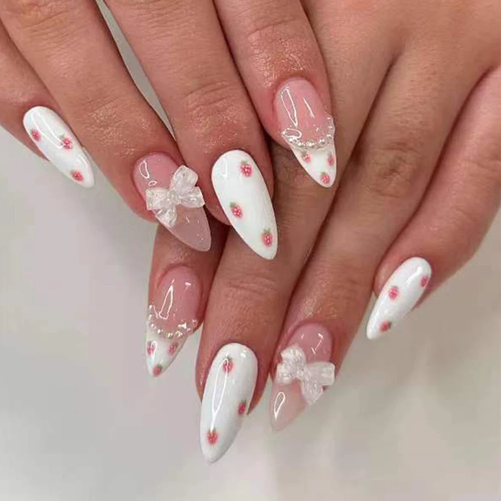 - Style: Adorable bowknot and sweet French tips for a chic look