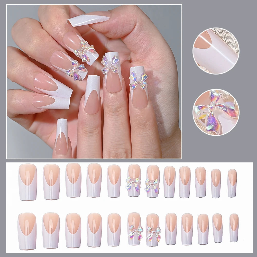 Kawaii Blush Pink 3D Bowknot & Pearl Press-On Nails πβ¨ | 24pcs Adorable Fake Nail Tips for Cute DIY Manicures!