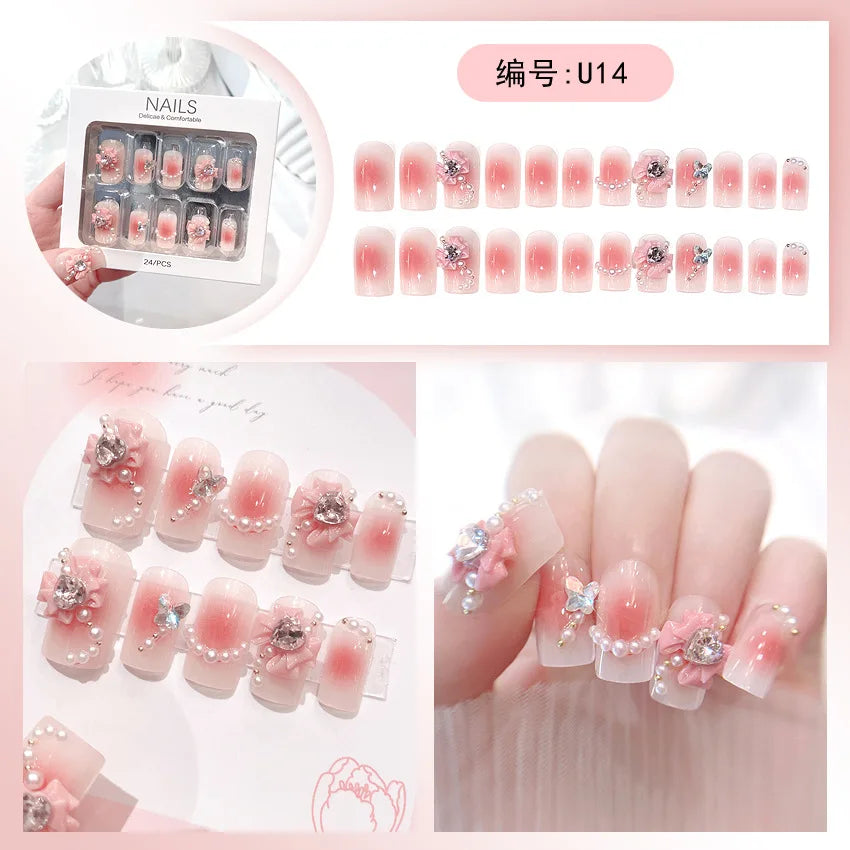 Transform your fingertips into a delightful masterpiece with our Kawaii Blush Pink 3D Bowknot & Pearl Press-On Nails! This adorable set of 24 pieces is perfect for crafting your own cute DIY manicures.