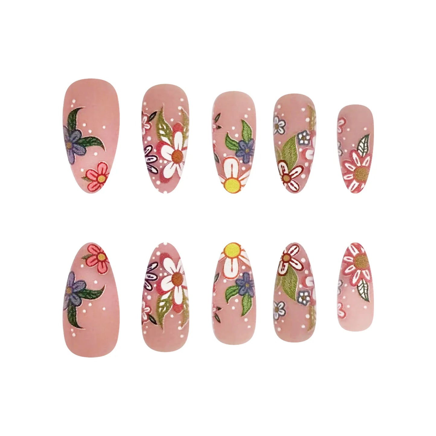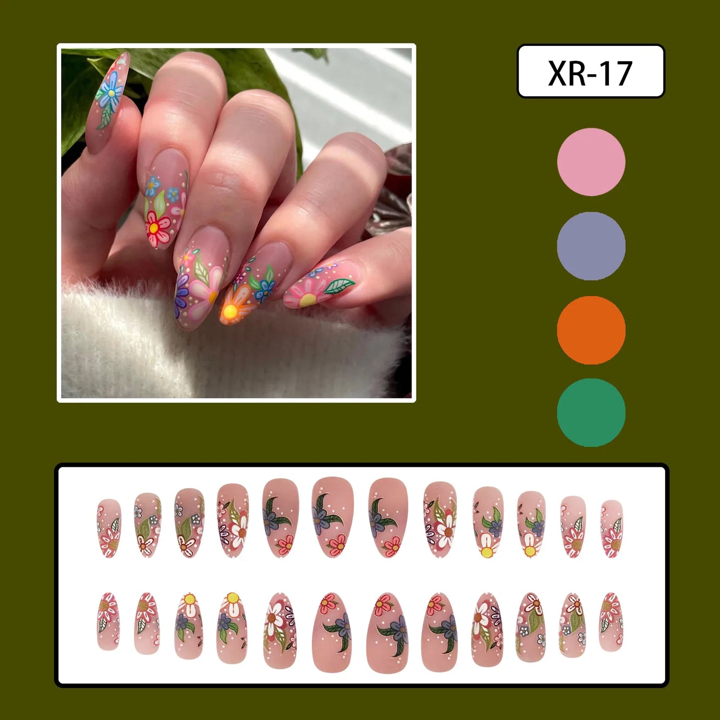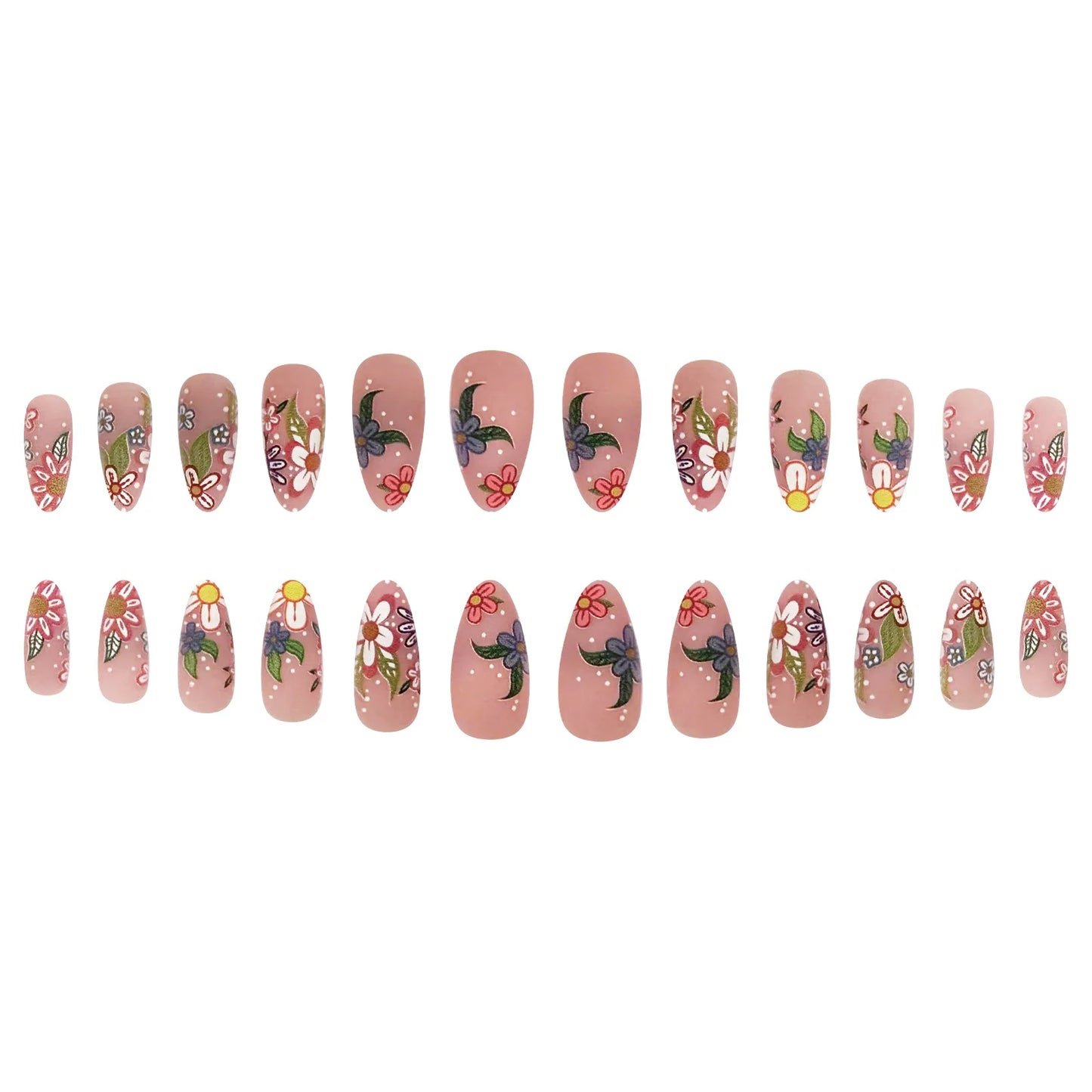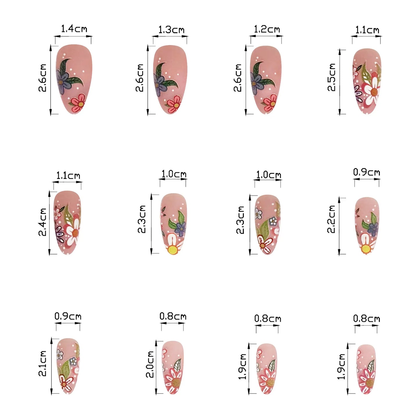 Cute Floral Fantasy 🌸✨ 24pcs Kawaii Press-On Nails - Colorful Almond Shaped Fake Nails for Spring/Summer Fun!