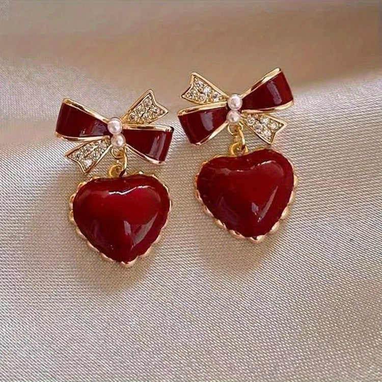 Adorable Kawaii Red Bow & Heart Dangle Earrings β€οΈπ | Cute Party Jewelry Gift for Women & Girls β¨