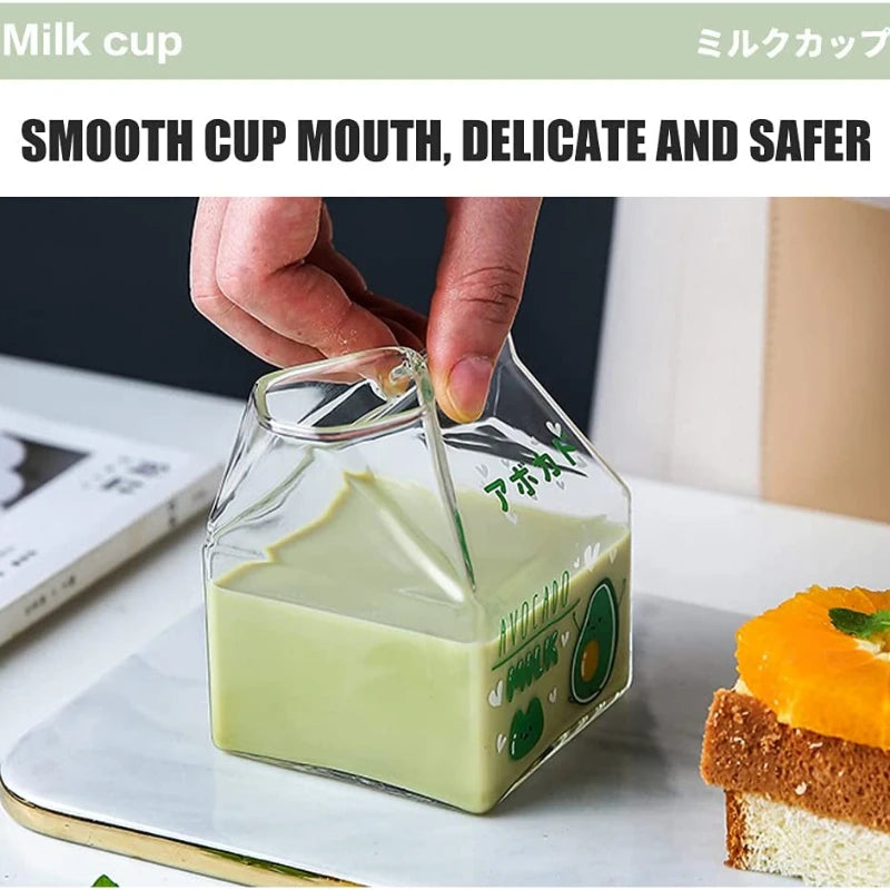 Kawaii Milk Carton Glass Cup 🥛✨ - 380ml Cute Strawberry & Peach Design for Breakfast Fun! 🍑🍓