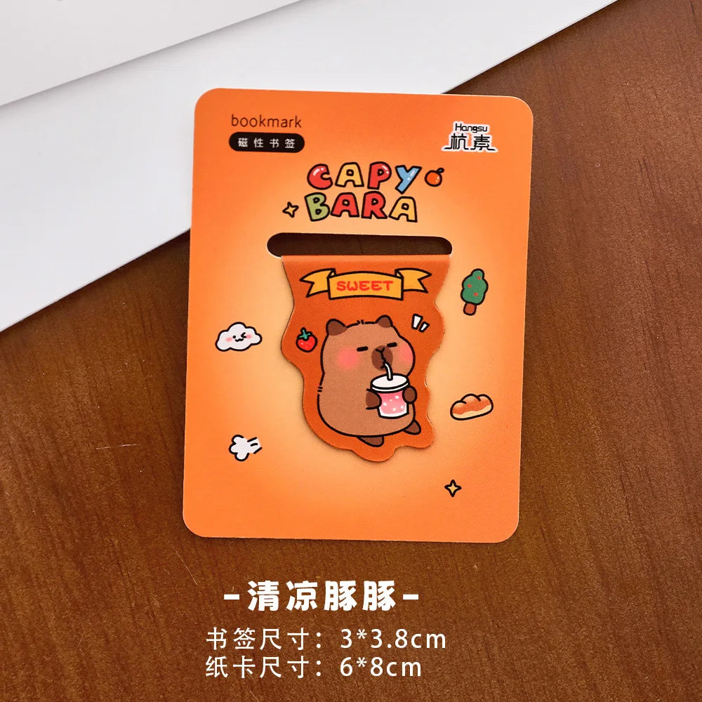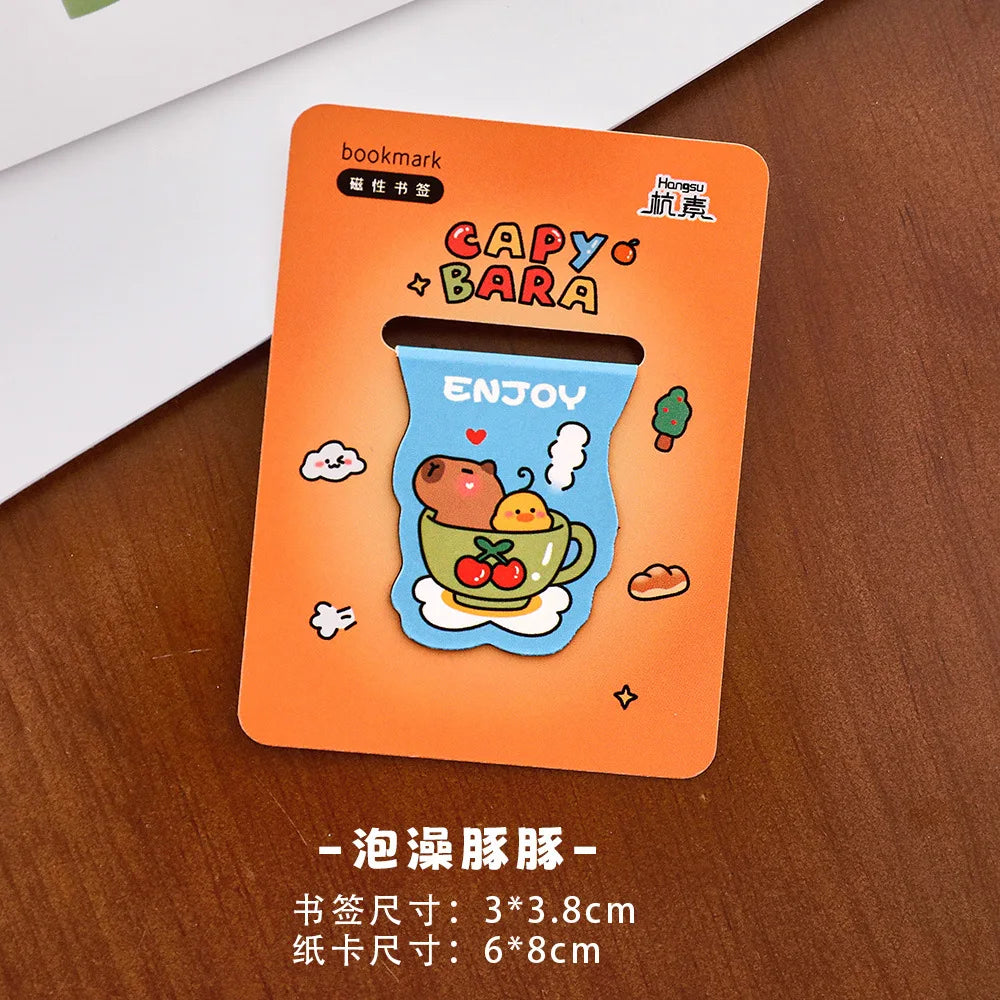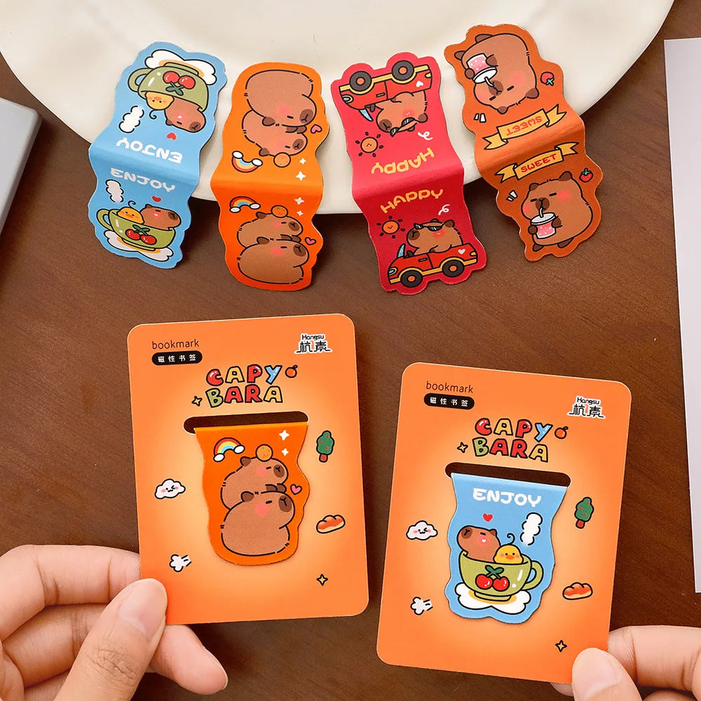 πΎ Adorable Capybara Magnetic Bookmarks πΎ | 4-pack Clip Set for Fun Reading Adventures πβ¨