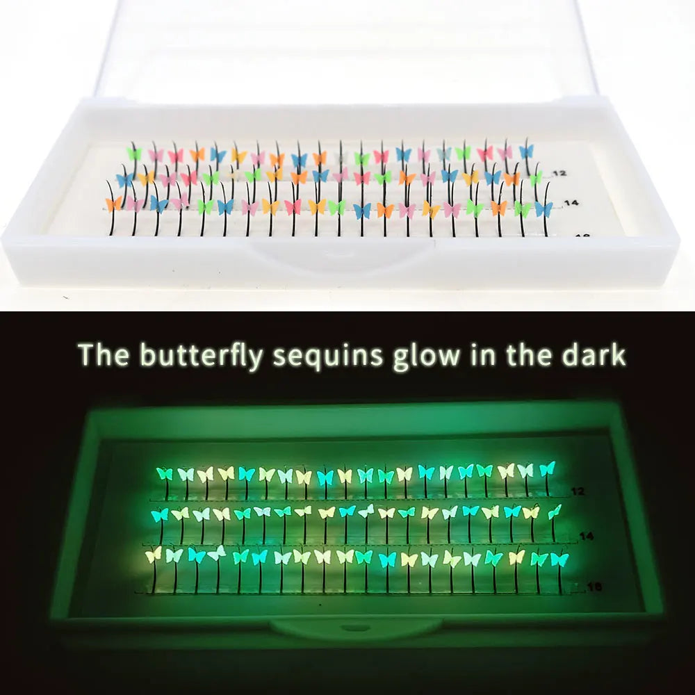 Transform your look with our enchanting 60pcs Mink False Eyelashes, featuring a whimsical touch of Noctilucent Butterfly Sequins Glitter! Perfect for adding a dash of magic to your party makeup or everyday charm.