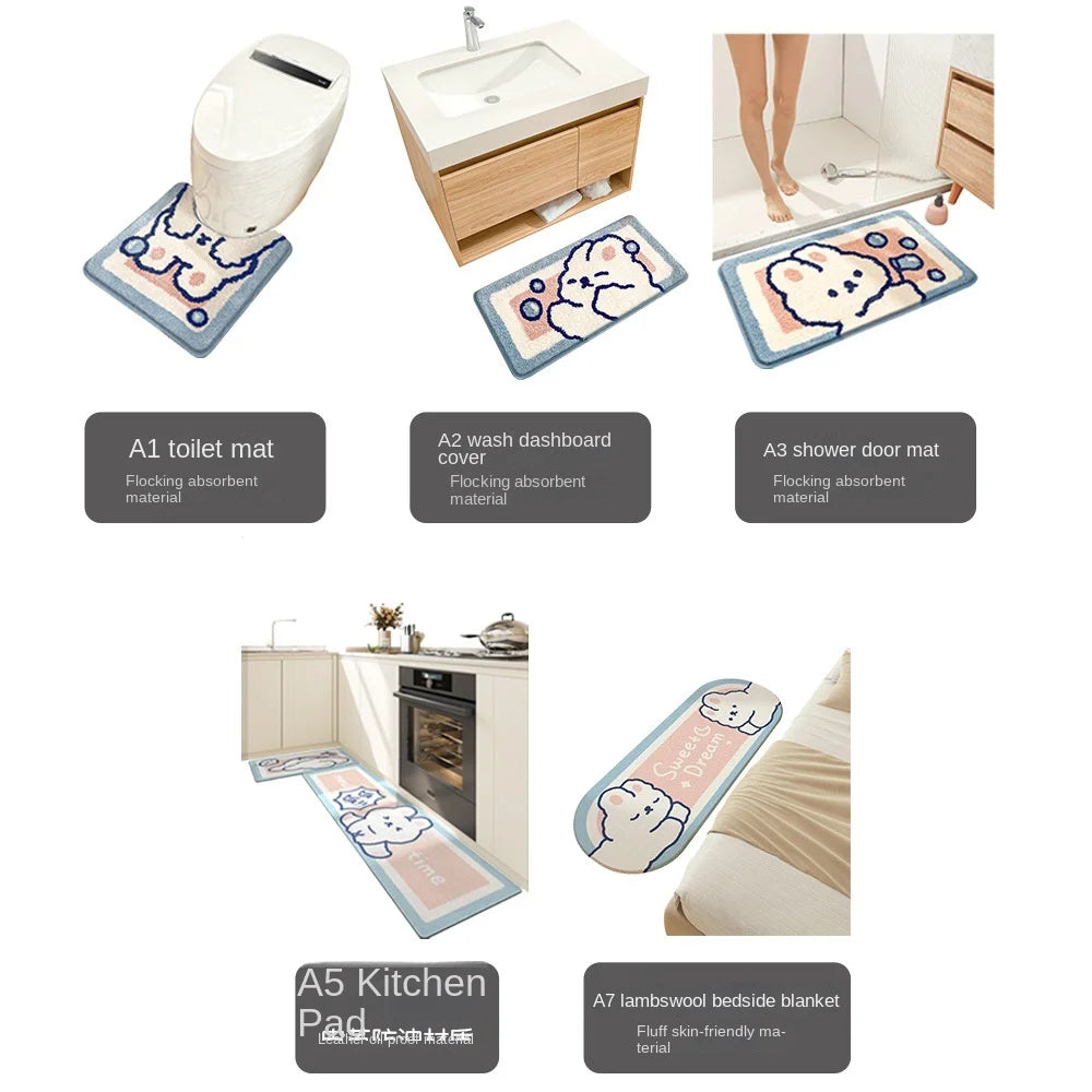 Kawaii Rabbit Bath Mat Set π°β¨ - Adorable 2-piece & 3-piece Thick Flocking Rugs for Bathroom, Bedroom & Kitchen! ππ