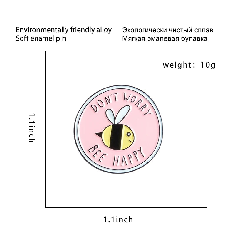 Bee Happy' Brooches Pink Cute Insect Bee Lapel Enamel pins Brooches Badges Clothes Bags pin Gift for Kids Cartoon 'Don't Worry