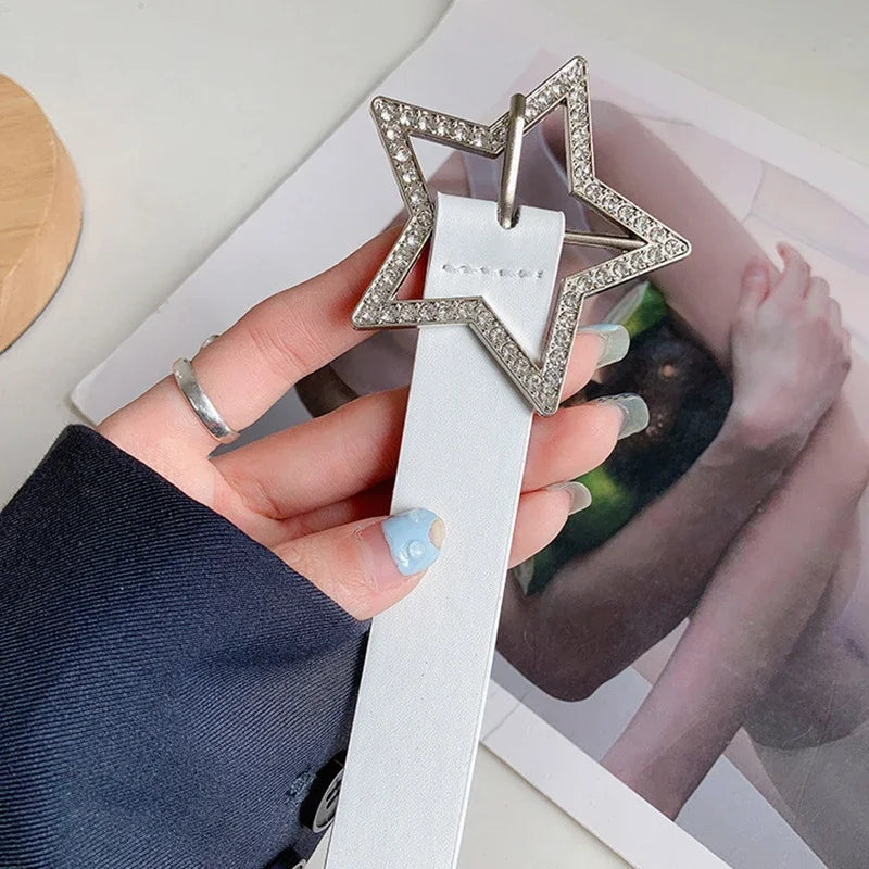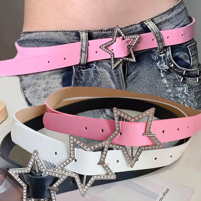 Elevate your style with this charming Y2K fashion belt! Perfect for any outfit, from jeans to dresses, this PU leather belt features a dazzling star buckle adorned with sparkling rhinestones. 🌟