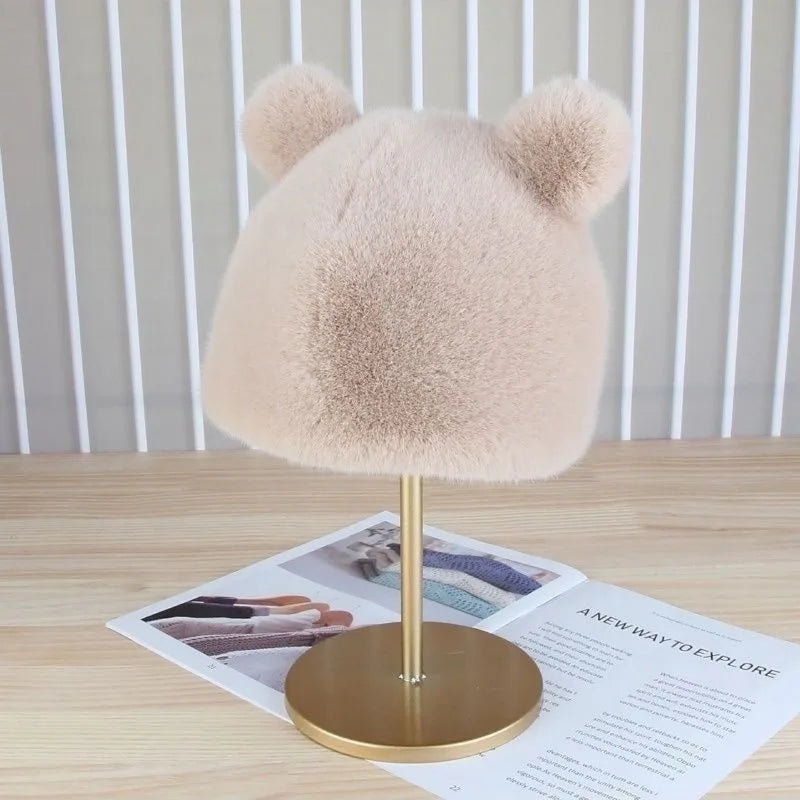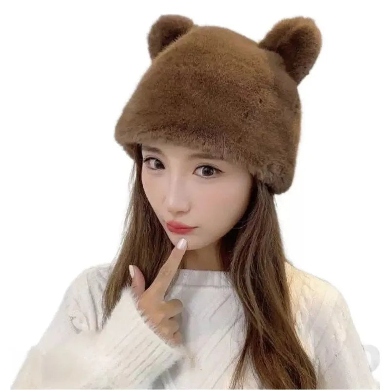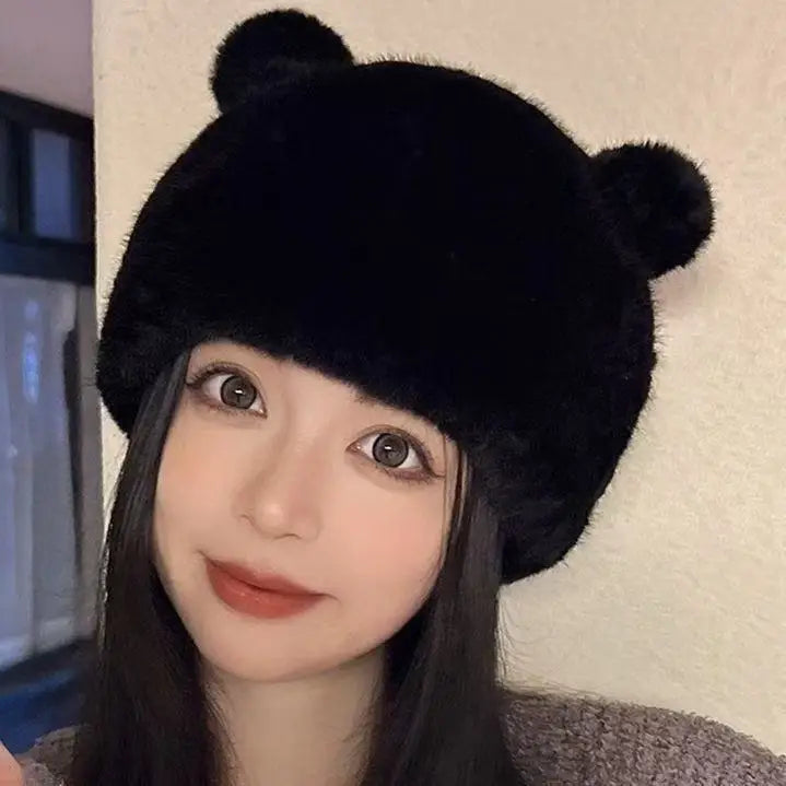 Snuggle Up with Our Cute Kawaii Black Bear Ears Plush Rabbit Fur Hat! π»βοΈ
