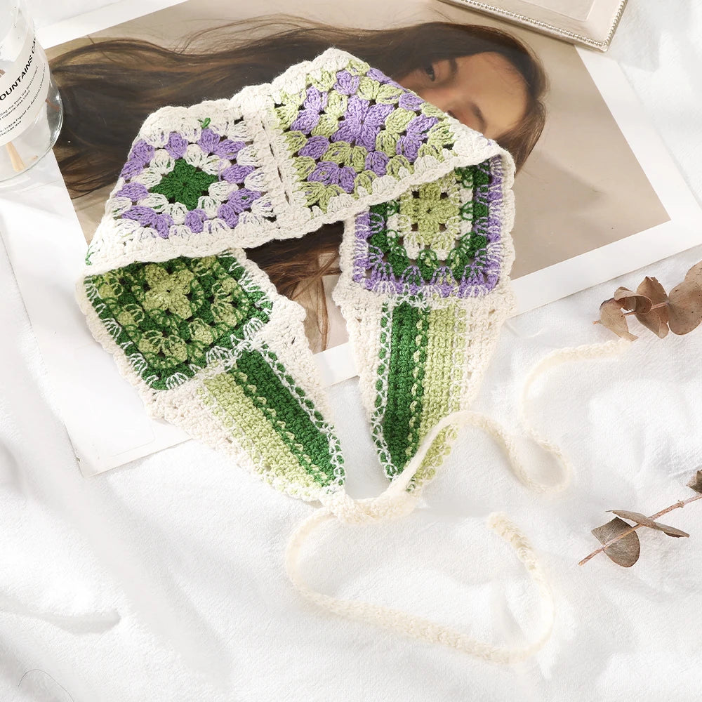 Kawaii Boho Flower Crochet Headband ๐ธโจ Vintage Turban Hair Scarf for Women - Fashionable Accessory for Every Season!