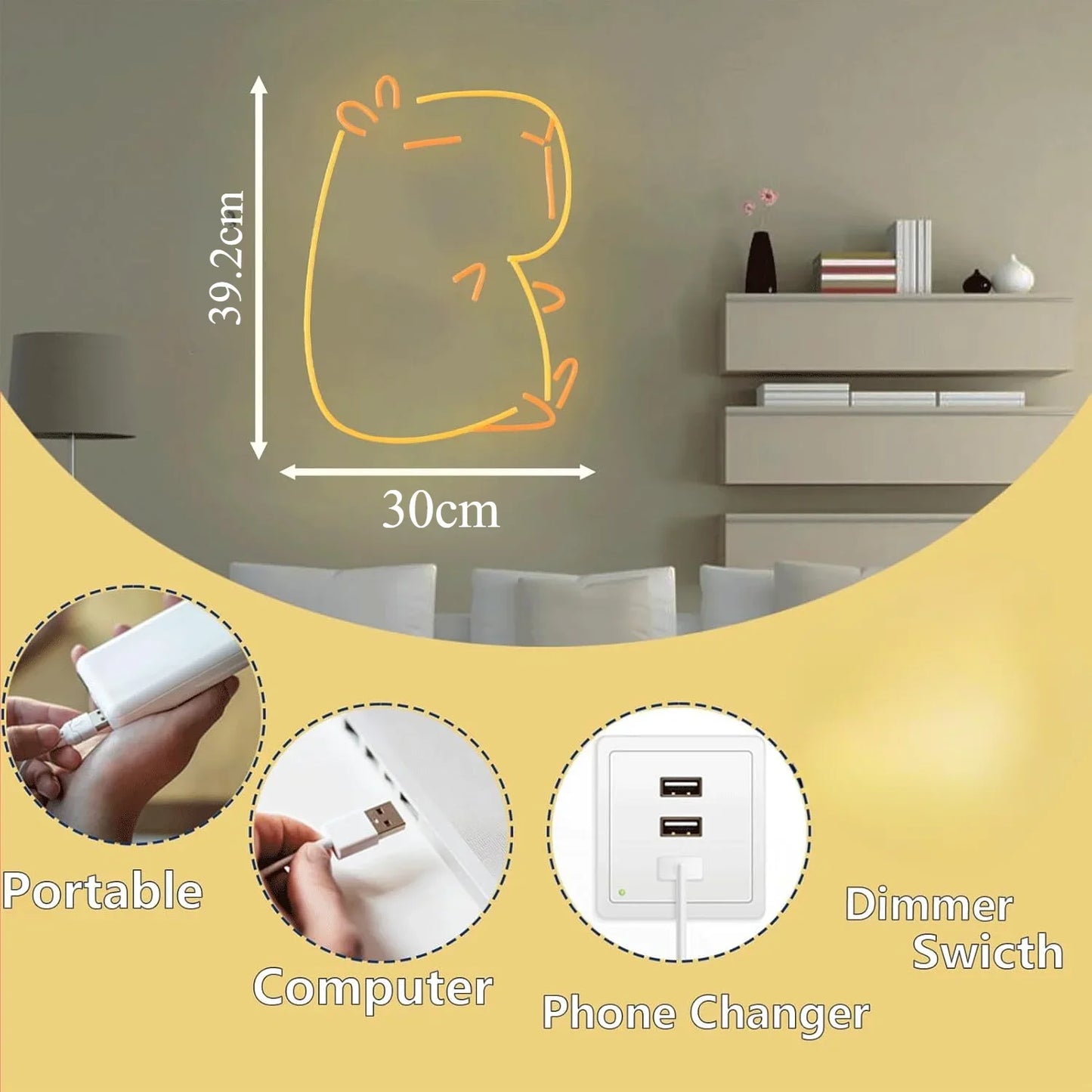 Kawaii Capybara LED Neon Light 🌈✨ | USB Dimmable Wall Decor for Kids' Rooms & Parties 🎉 | Handmade Art Gift 🐾