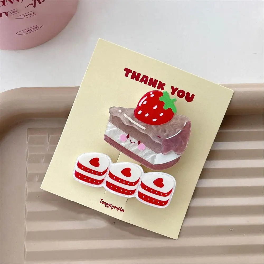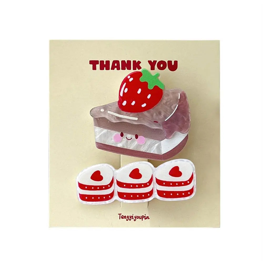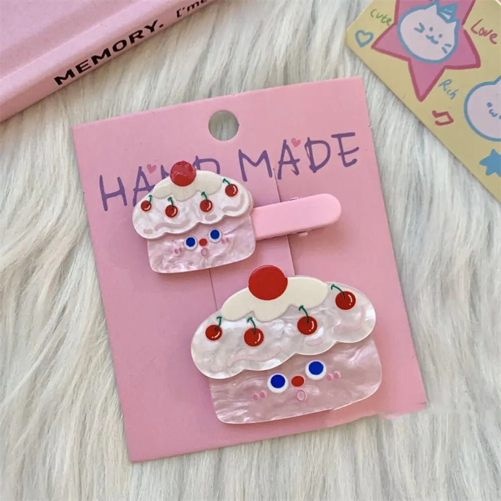Kawaii Cartoon Cherry Cake Hair Clip 🍒🎂 | Fun & Creative Mini Barrettes Set | Adorable Korean Style Hair Accessories ✨