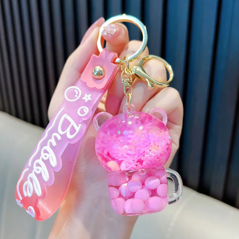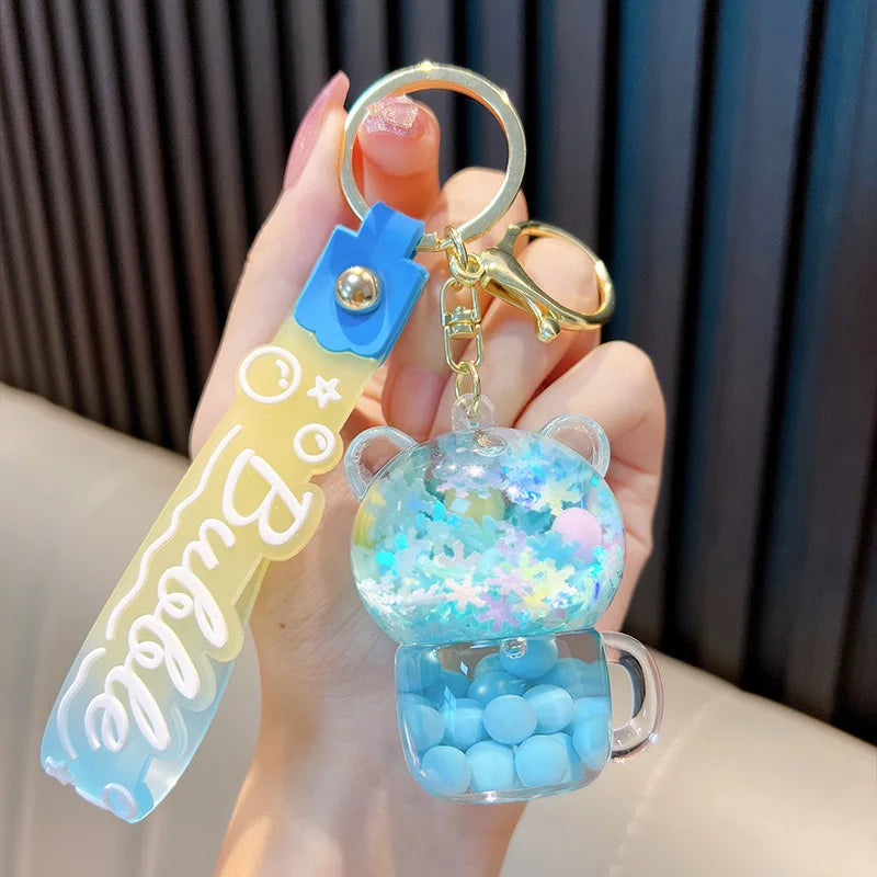 π±β¨Adorable Kitty Tea Cup Liquid Keychain ππ Floating Quicksand Joy! Perfect Pendant for Girls & Backpacks! ππ