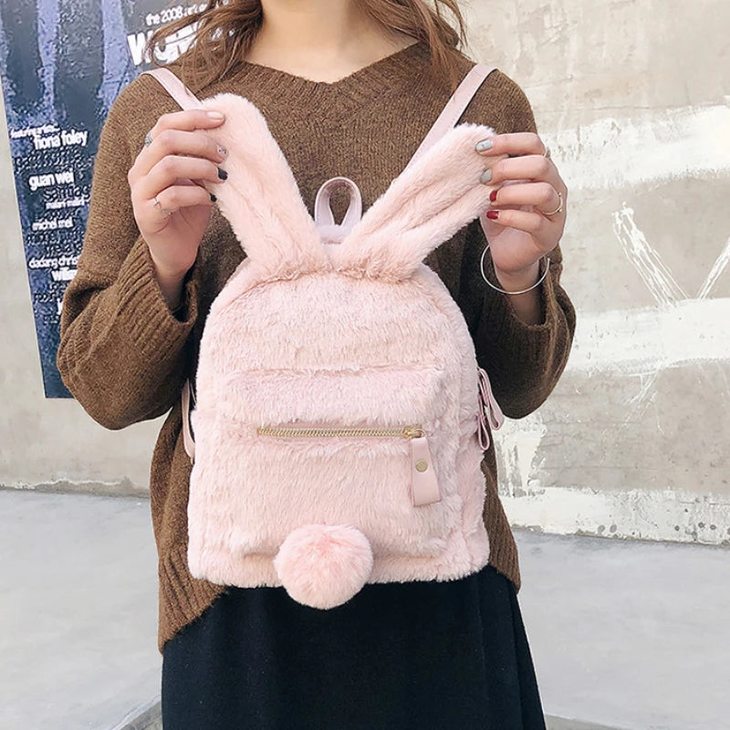 Fluffy Rabbit Backpack 🐇✨ Kawaii School Bag for Kids - Cute & Cozy Travel Companion!