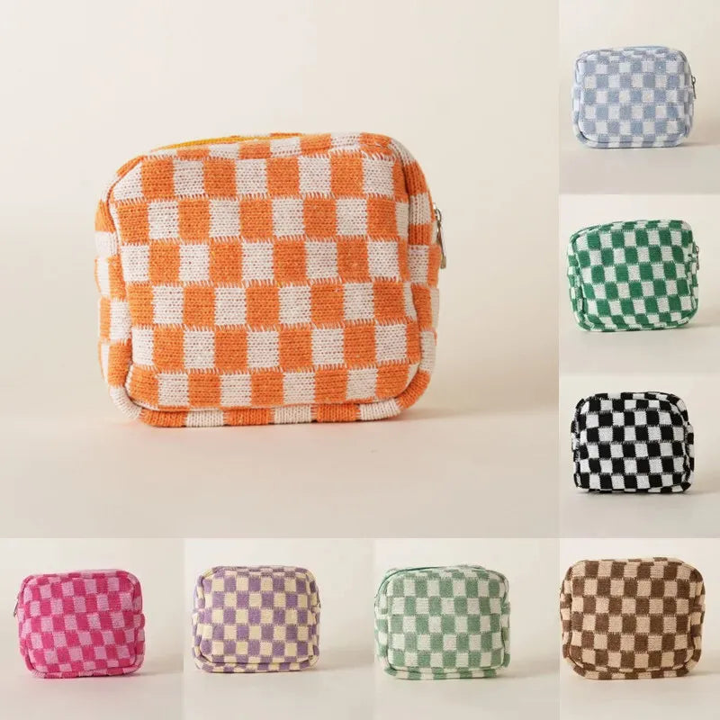 Meet your new delightful companion, the Kawaii Colorful Knitted Checkerboard Mini Makeup Pouch! This portable cosmetic bag for women is perfect for keeping your beauty treasures safe and sound. Crafted from soft, vibrant knitted fabric, it features a charming plaid pattern thatβs both stylish and playful!