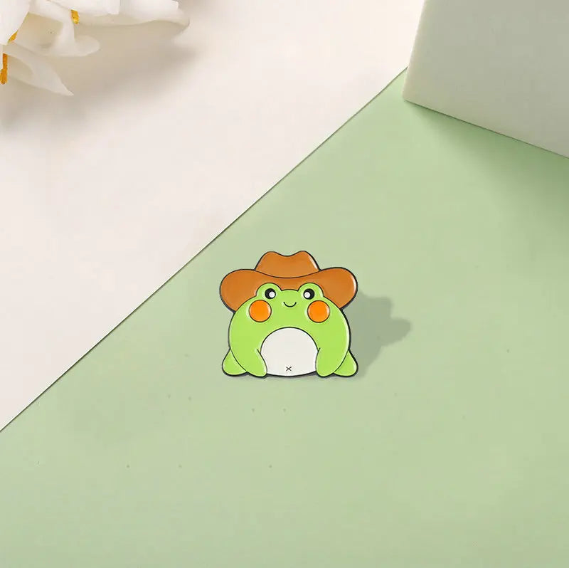 Kawaii Cowboy Hat Frog Enamel Pins πΈπ© - Cute Froggy Brooches for Bags & Clothes, Fun Animal Jewelry Gift for Kids & Friends!