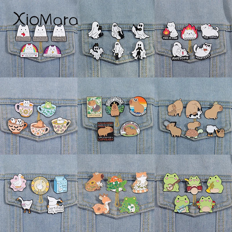 Kawaii Animal Brooch Set πΎβ¨ Adorable Enamel Pins - Cute Cat & Capybara Metal Accessories for Fashion & Gifts! ππ
