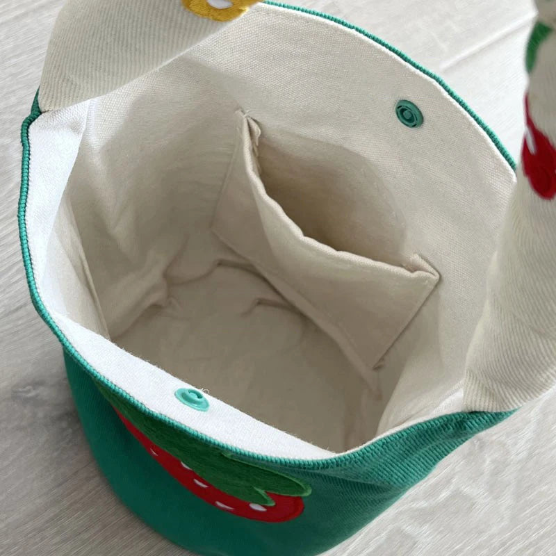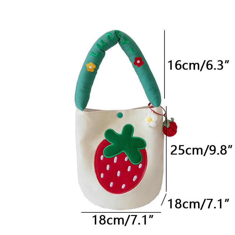 Kawaii Strawberry Embroidery Canvas Bucket Bag πβ¨