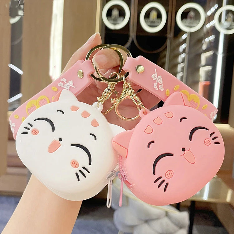 Cute Cartoon Cat Silicone Coin Purse with Keyring