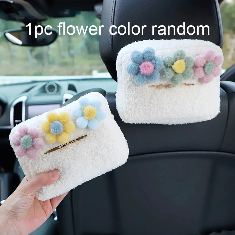 Kawaii Plush Flower Car Tissue Box πΈβ¨ Hanging Organizer for Visor - Adorable Auto Accessory! ππ