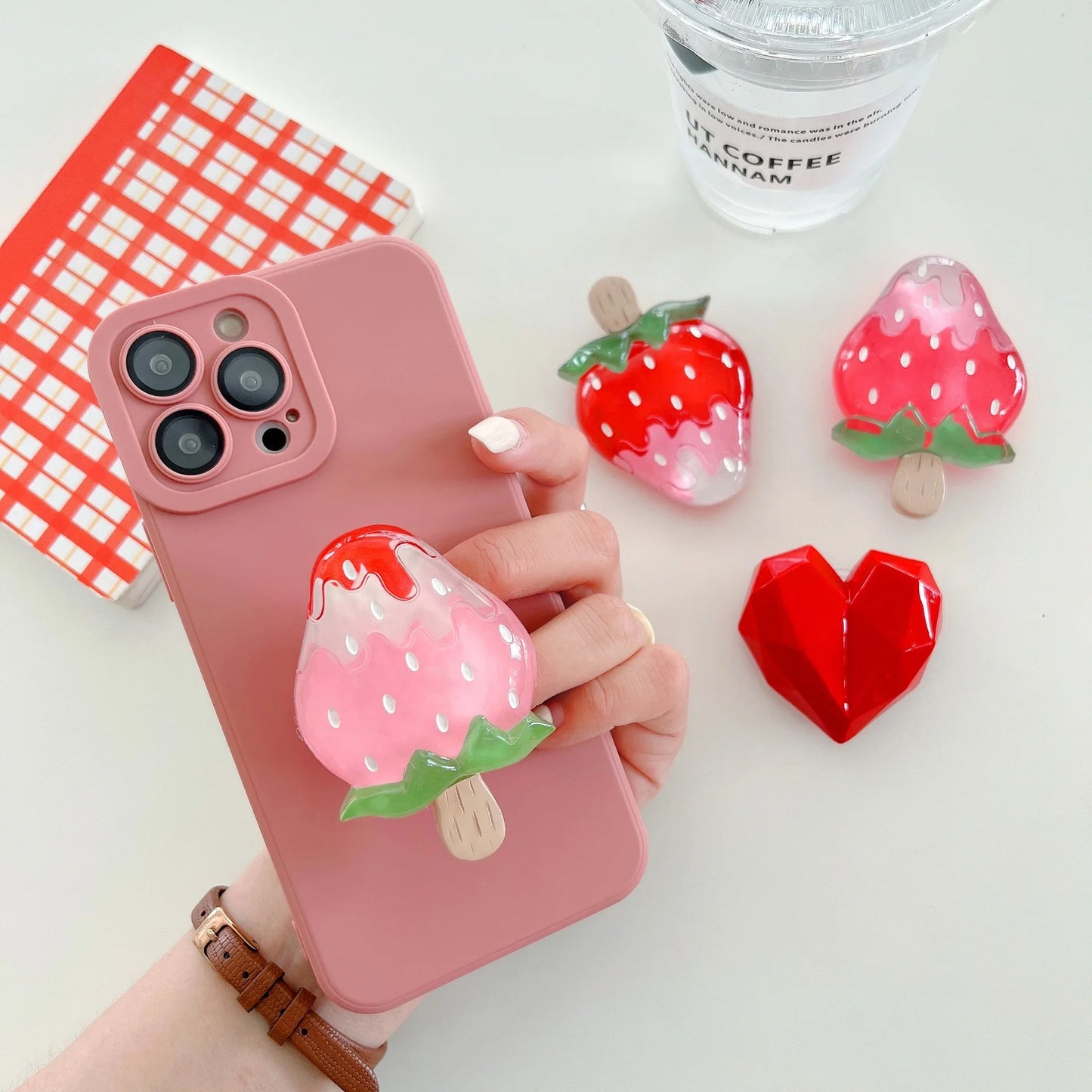 🍓 Adorable Strawberry Glass Lollipop Phone Grip & Stand 🌟 Universal Fit for All Phones 📱✨