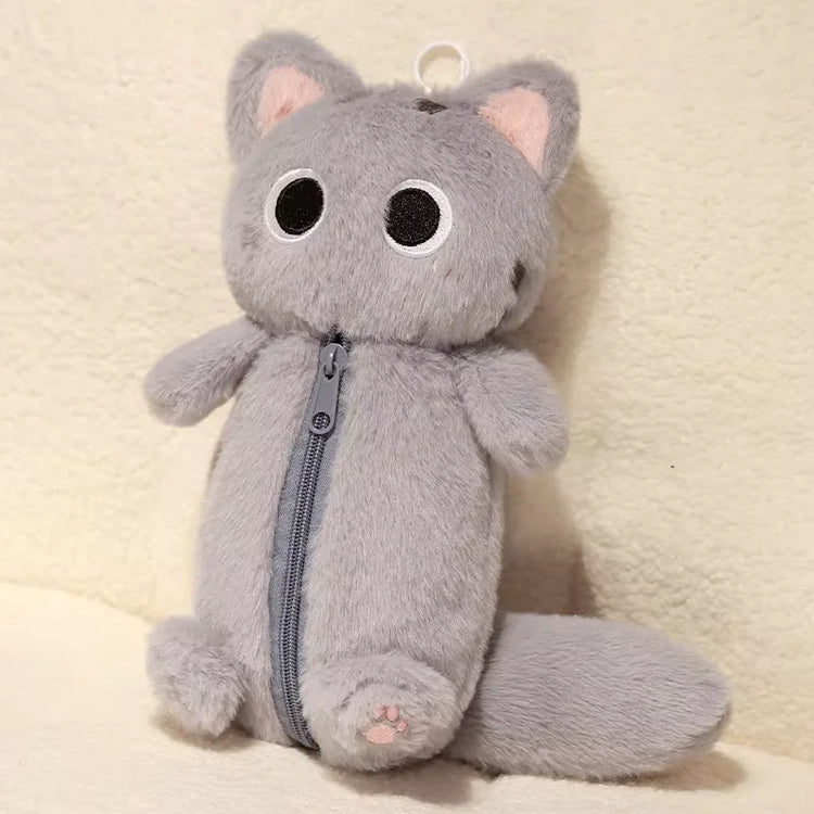 Kawaii Gray Plush Kitten Pencil Case πΎβ¨ - Adorable Large-Capacity Stationery Organizer for Students! πβοΈ