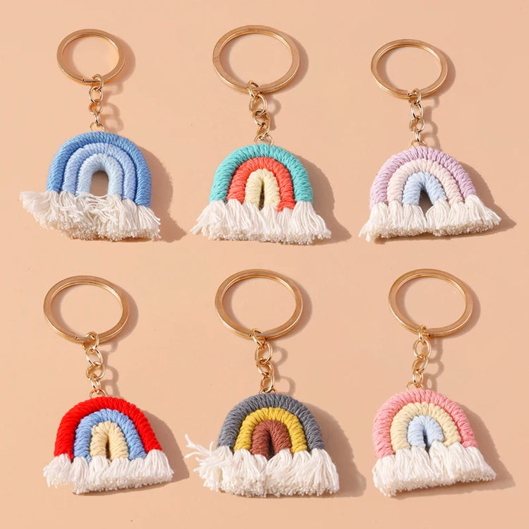 Pastel Rainbow Tassel Hand Knit Keychain For Car Bag Gift 🎀🌈💖