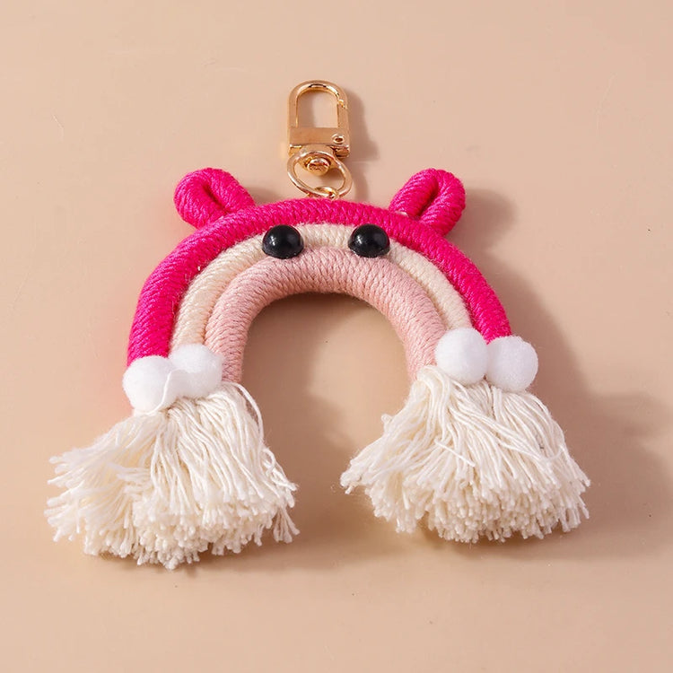 Pastel Rainbow Tassel Hand Knit Keychain For Car Bag Gift πππ