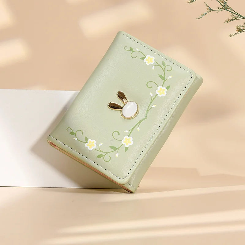 Cute Lady Cartoon Rabbit Purse Folding Multi-card Card Bag Three Fold Coin Wallet Student Money Clip High Capacity Portable Purse