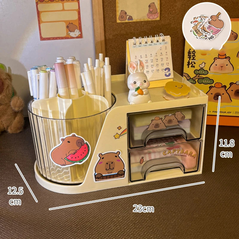 Sprinkle some magic on your desk with our Kawaii Rotating Pen Holder! This delightful organizer features: