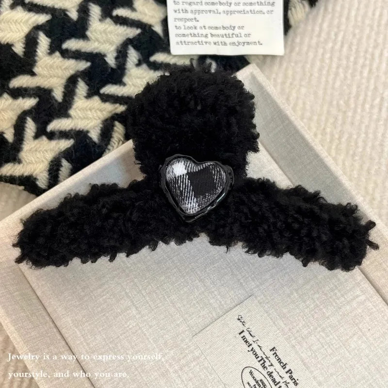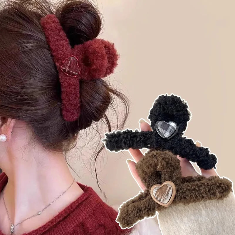 Kawaii Heart Plush Hair Claw Clip π - Adorable Hair Accessory for Long Hair, Perfect for Women & Girls πβ¨