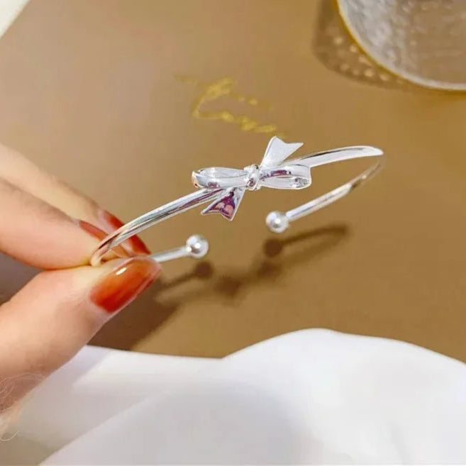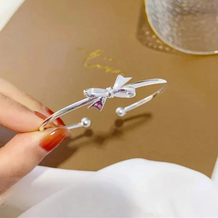 Adorable Kawaii 925 Sterling Silver Bow Bangles for Women πβ¨ - Chic Party & Wedding Bracelets, Perfect Gift Idea! π