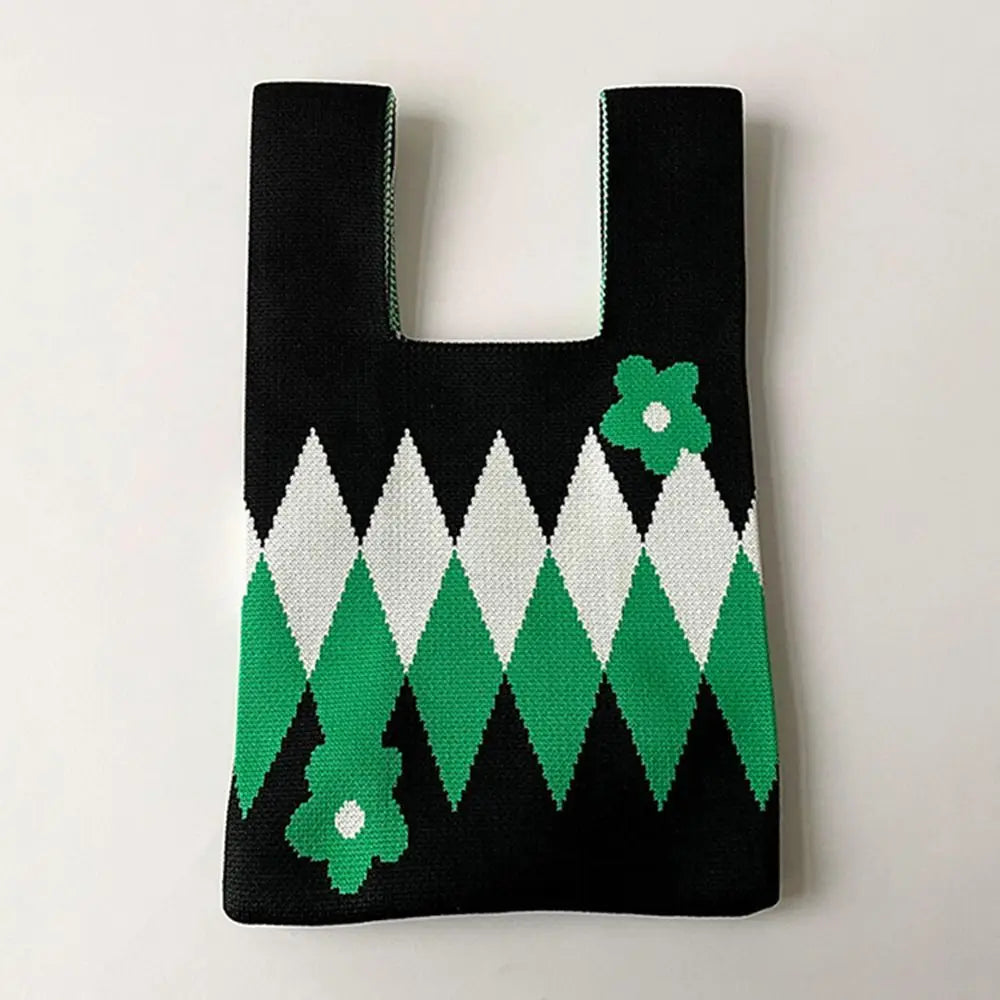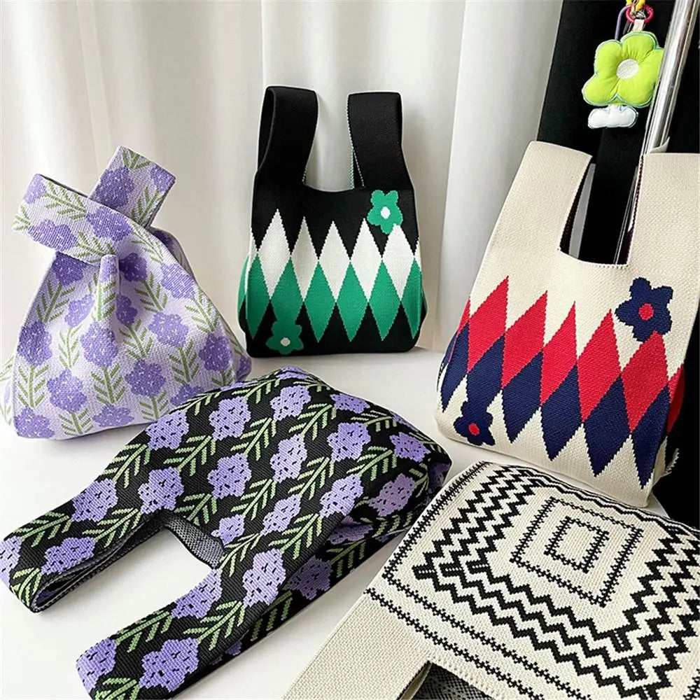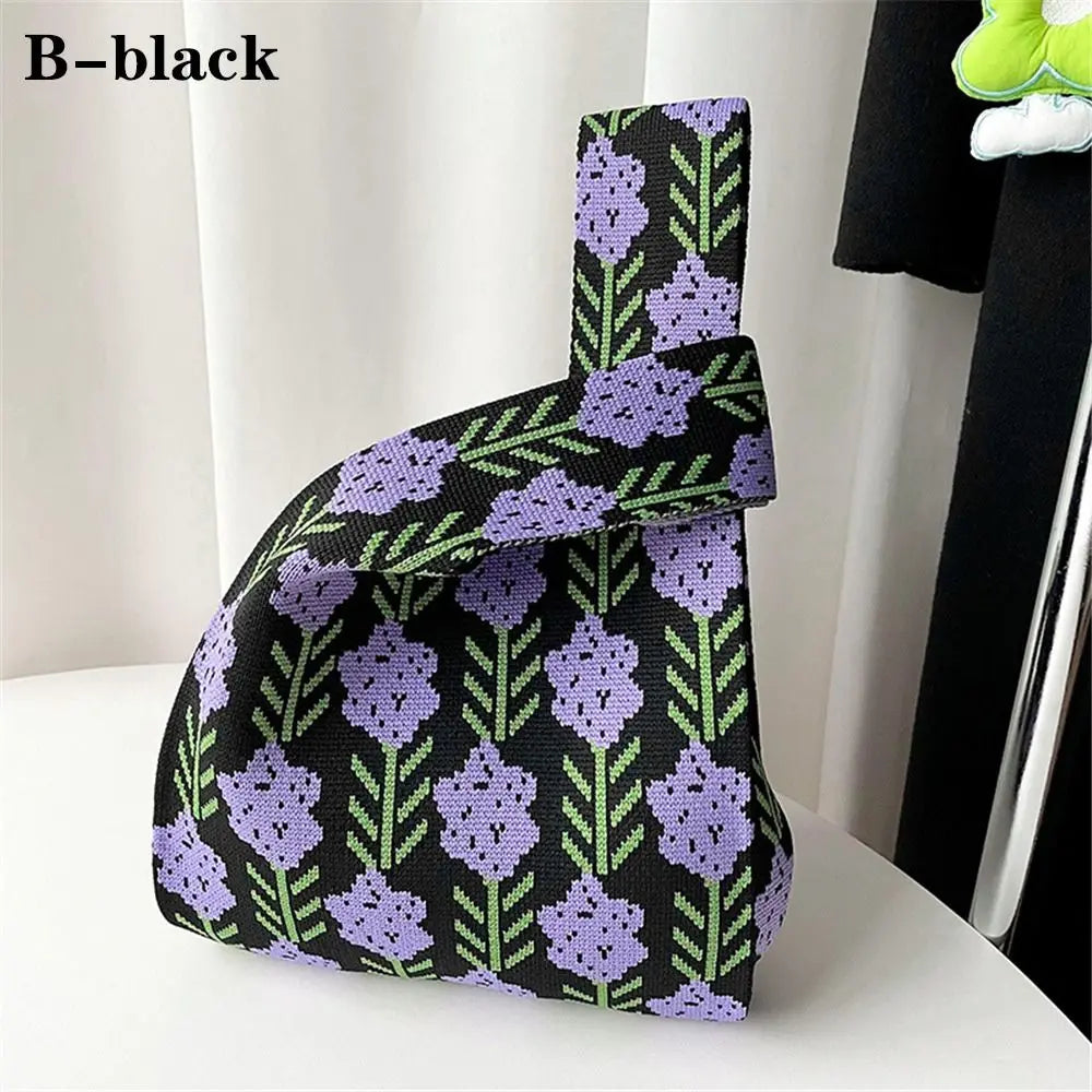 Kawaii Floral Knit Handbag πΈβ¨ | Cute Womenβs Casual Tote & Wrist Bag | Reusable Shopping Companion ππ