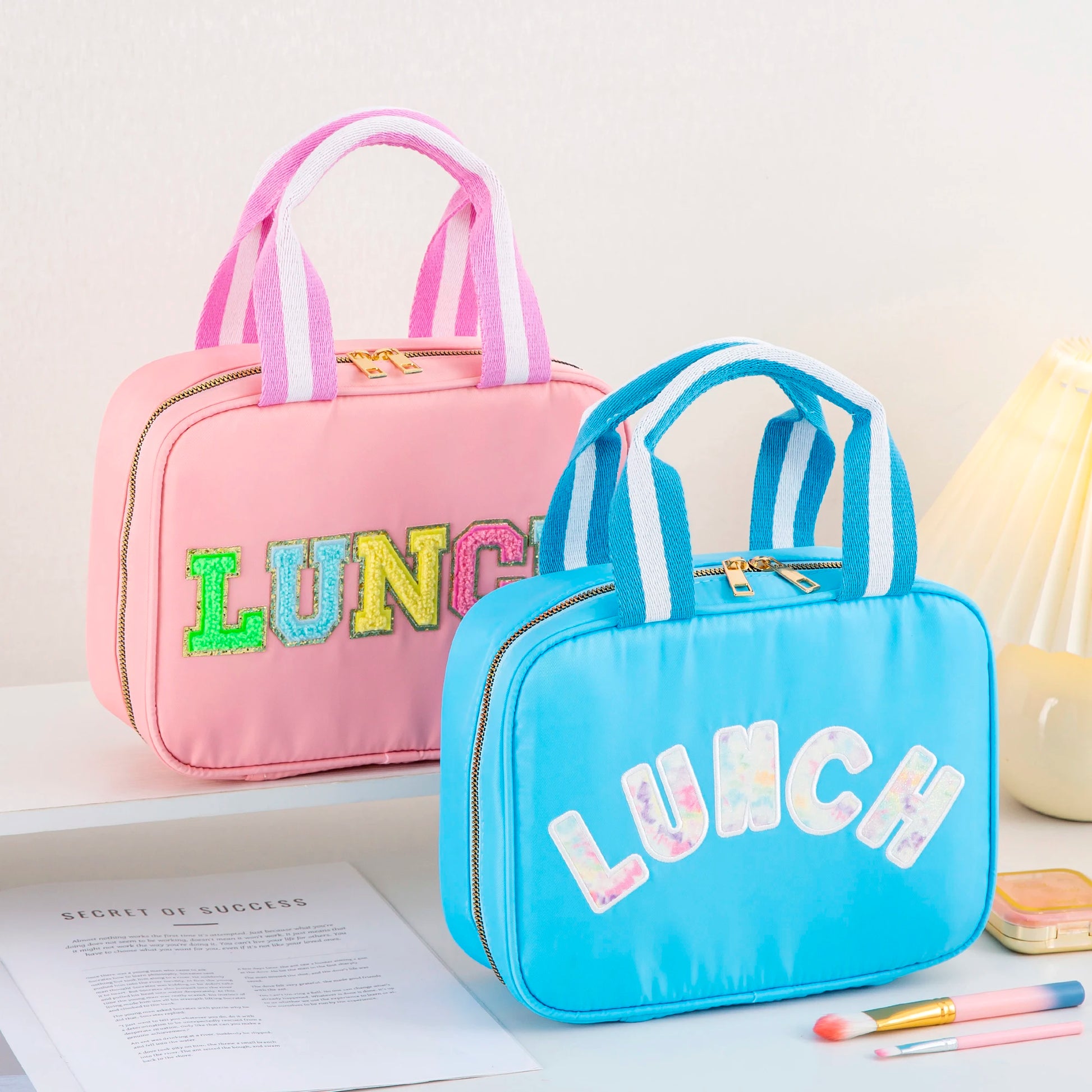 Kawaii Nylon Insulated Lunch Tote πβ¨ | Adorable Reusable Cooler Bag with Chenille Letters for Kids & Travel π₯ͺπ