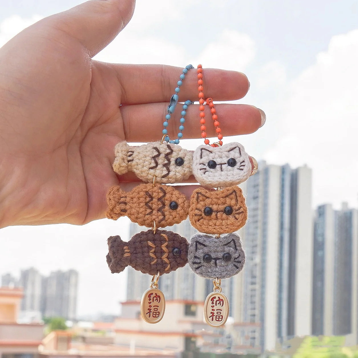 Adorably tiny, endlessly charming: this handmade crochet cat fish keychain pendant is the cutest bag accessory to brighten keys, totes, and everywhere you go.