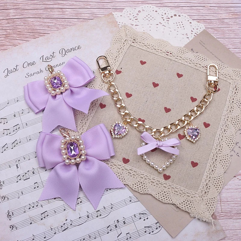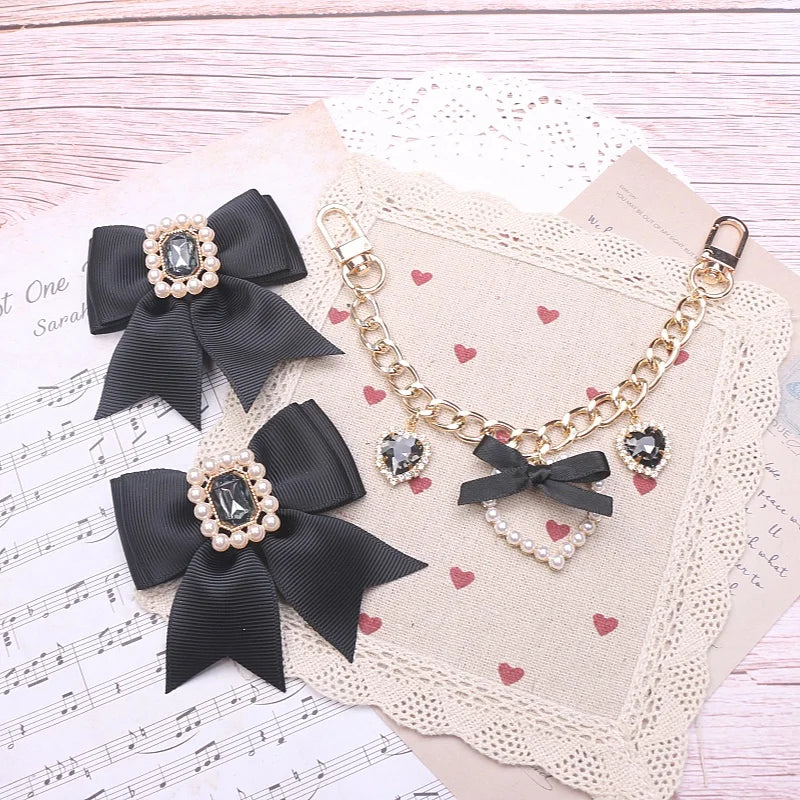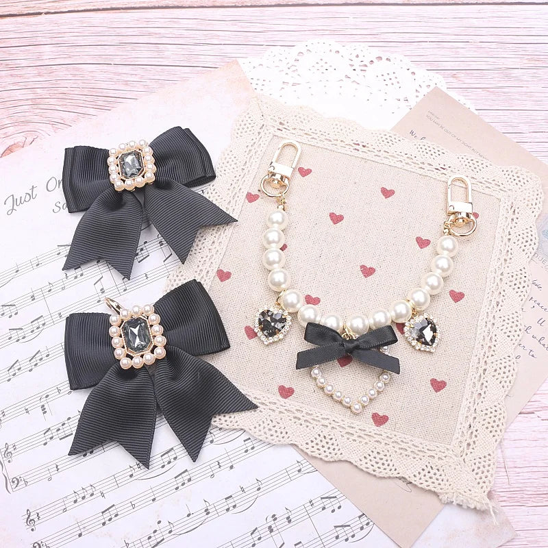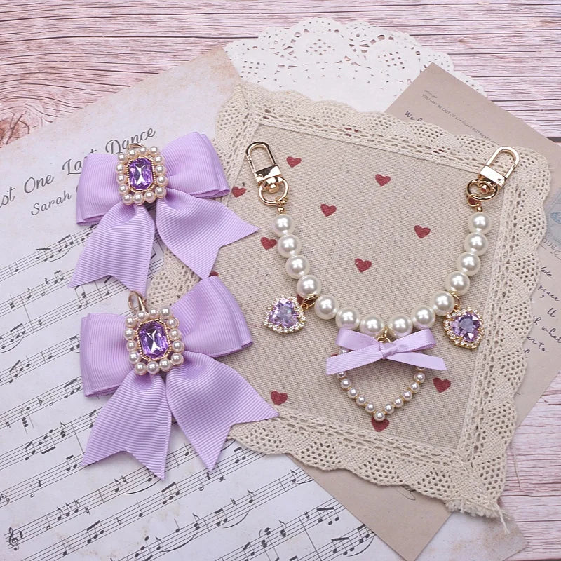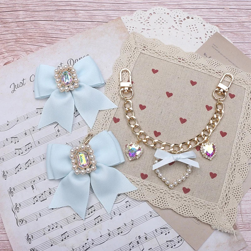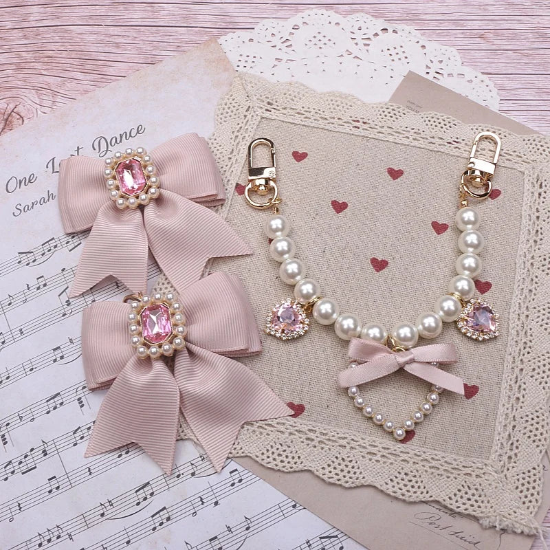 Kawaii Pearl Bow Rhinestone Love Pendant Bag Charm 🎀 | Handmade Japanese Sweet Accessories for Girls 💖✨