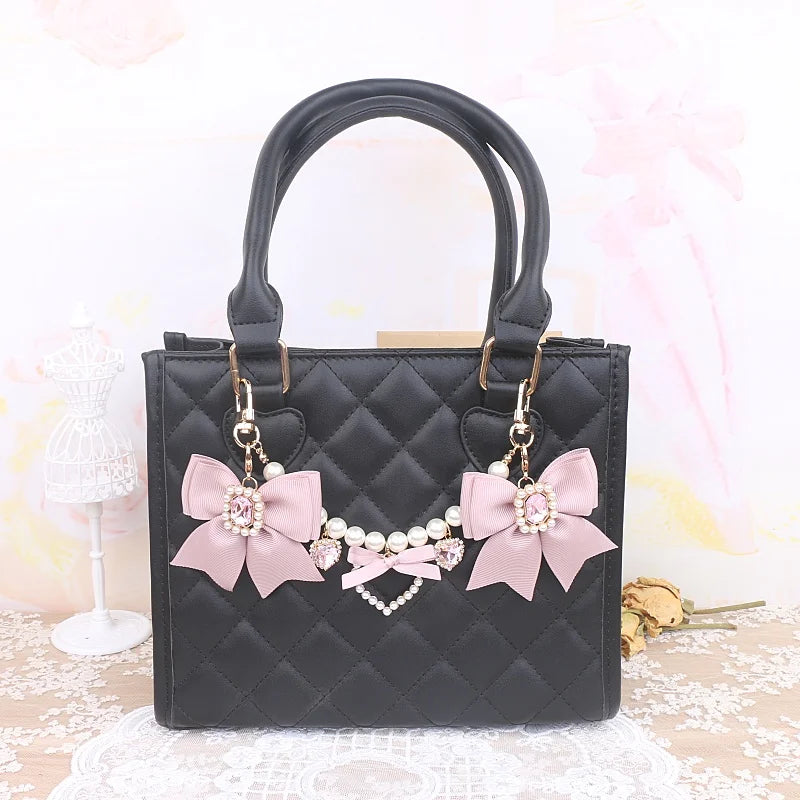 Introducing the Kawaii Pearl Bow Rhinestone Love Pendant Bag Charm 🎀 – a delightful treasure for every girl who loves a sprinkle of sweetness in her style! Handmade with love in Japan, this enchanting accessory showcases: