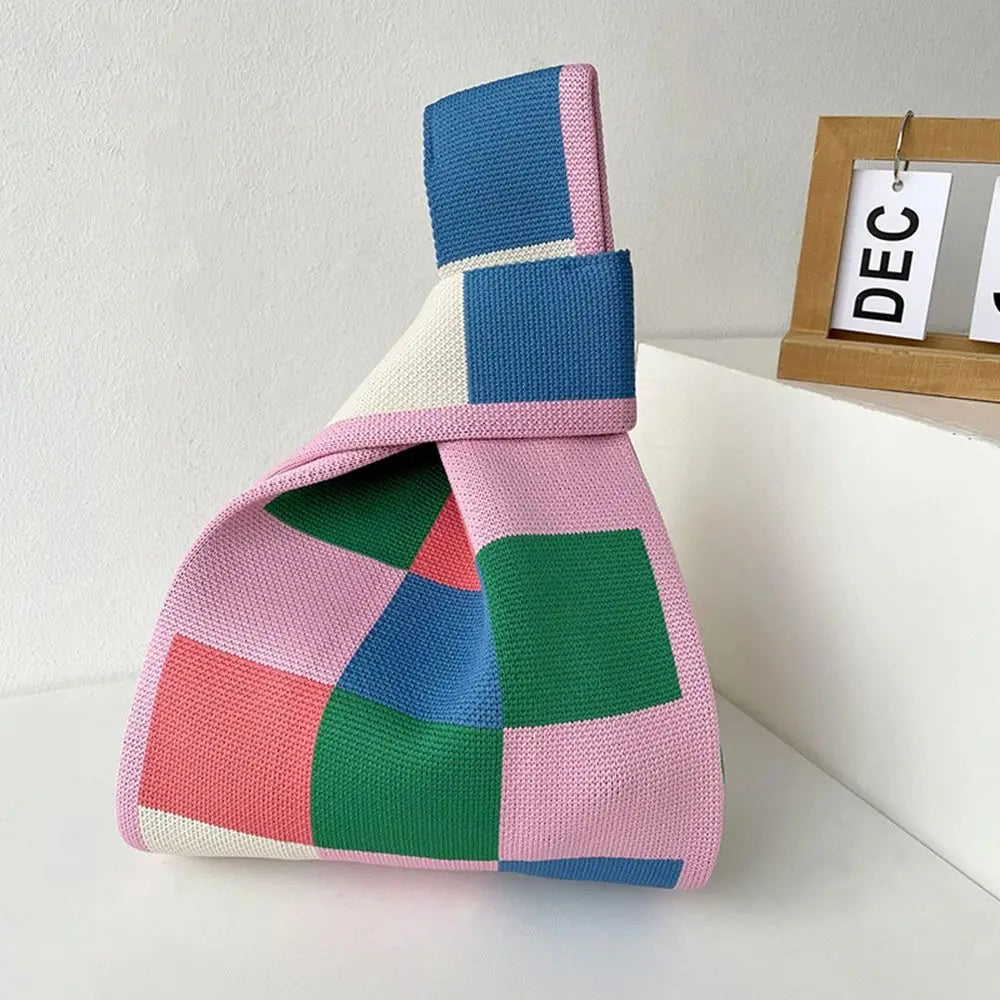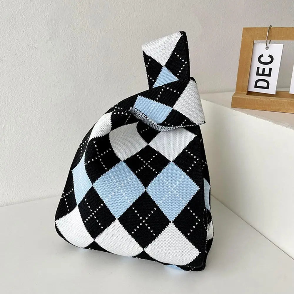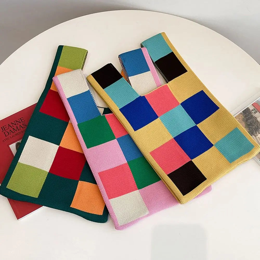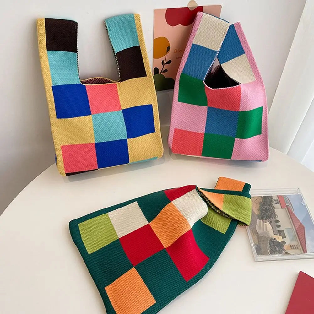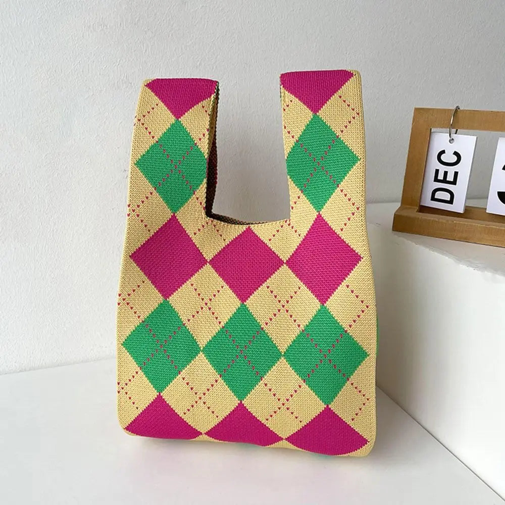 Kawaii Knitted Mini Tote Bag πβ¨ | Cute Plaid Handbag for Women | Stylish & Versatile Reusable Shopping Bag ππ