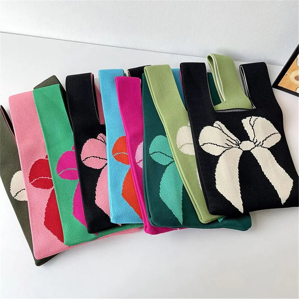 πΈ Adorable Bow-Tie Knit Tote π Handmade Wrist Bag for Trendy Girls π