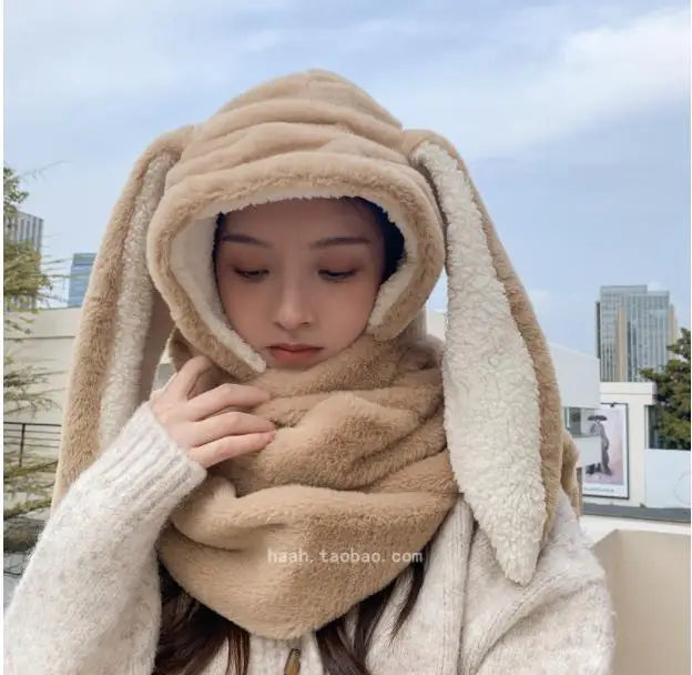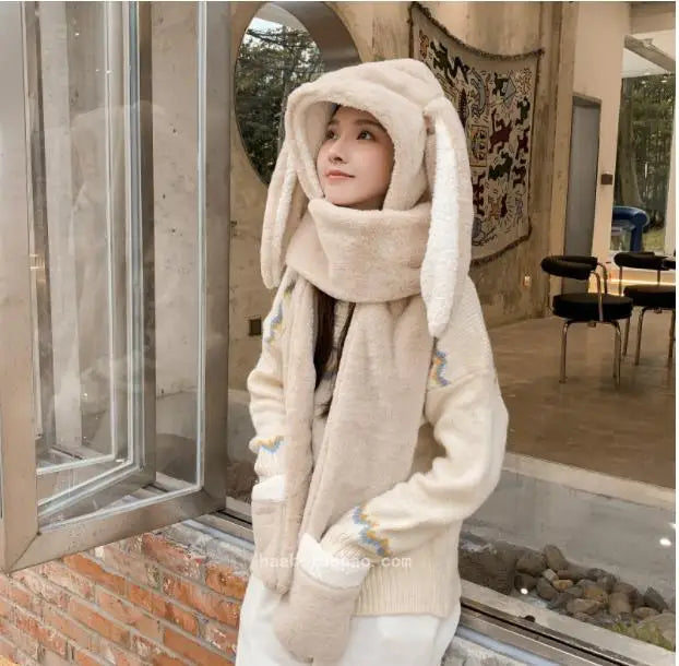 π₯° Kawaii Plush Rabbit Ears 3-Piece Winter Hat & Scarf Set π°β¨