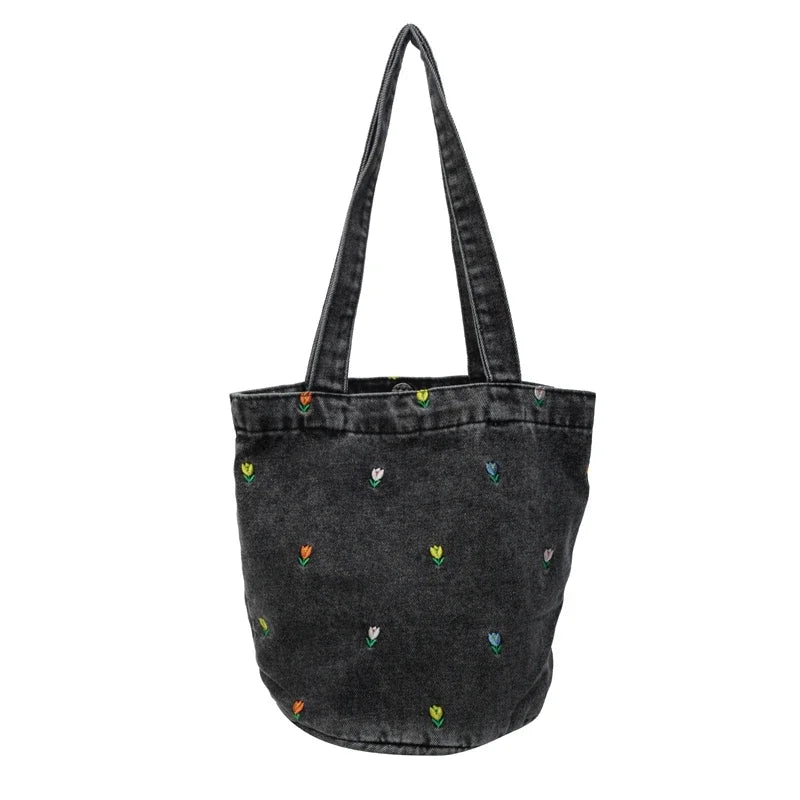 Kawaii Embroidered Denim Bucket Bag 🌸✨ - Trendy Large Capacity Shoulder Tote for 2024!