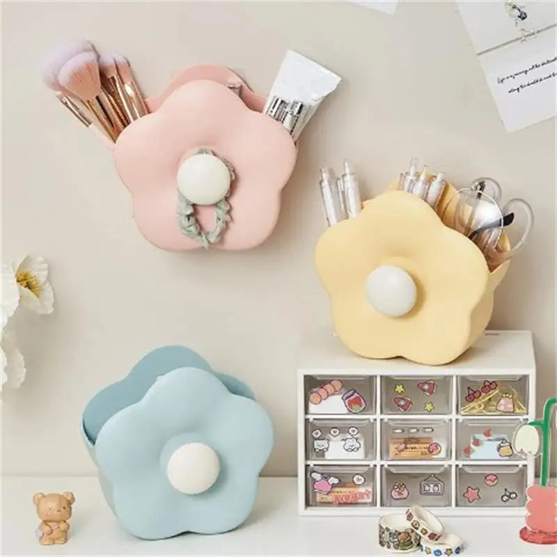 Kawaii Floral Desktop Organizer πΈβ¨ - Cute Wall-Mounted Pen Holder for School & Office Supplies! ποΈπ