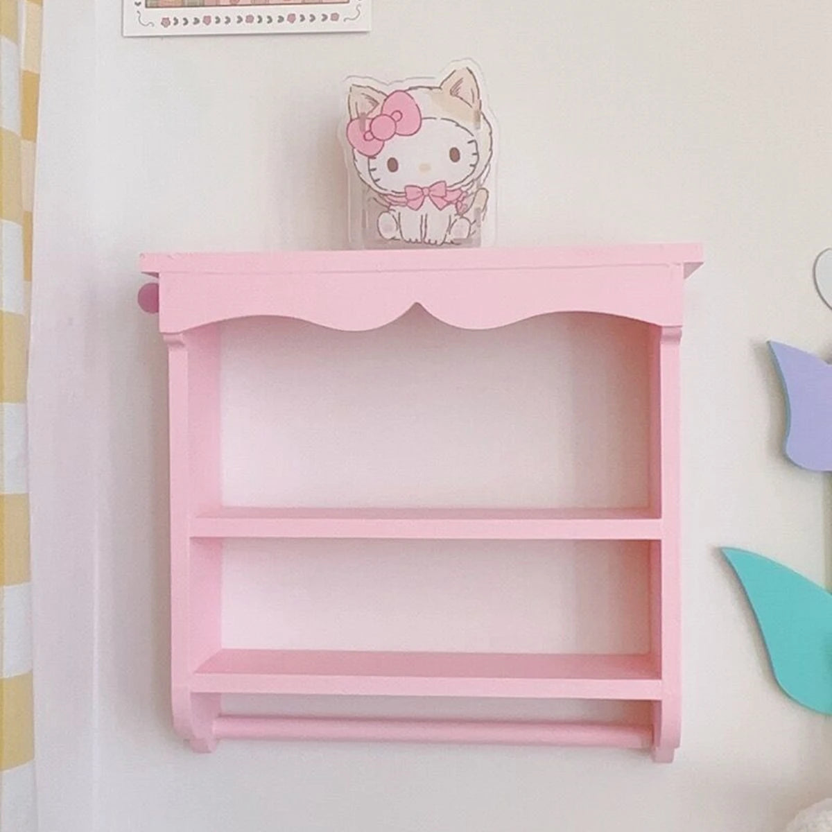 Transform your space into a dreamy paradise with our adorable Kawaii Heart-Shaped Pink Wall Shelves! Made from high-quality wood, these charming shelves are perfect for displaying your favorite cosmetics and trinkets.