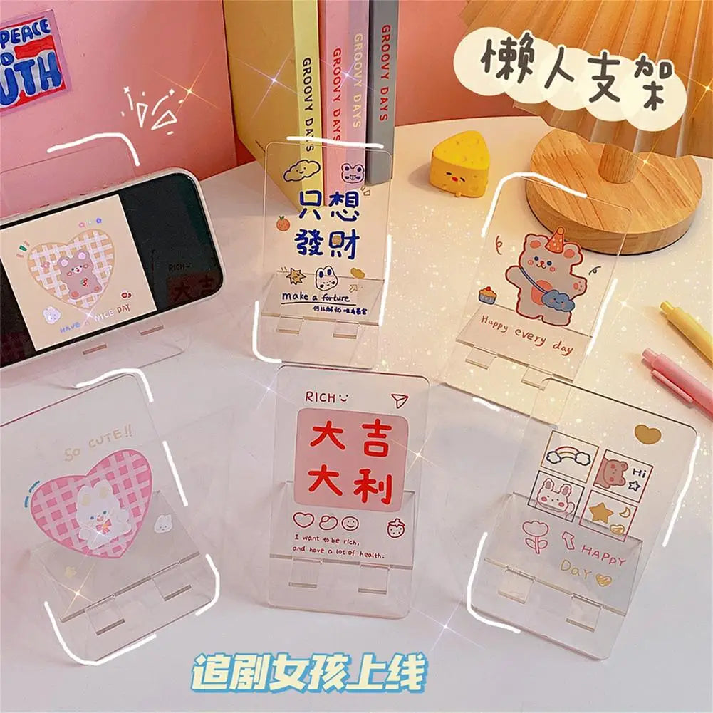 Kawaii Acrylic Phone Stand Desk Phone Holder Cute Transparent Student Lazy Desktop Stand Portable Tablet Stand New Arrival