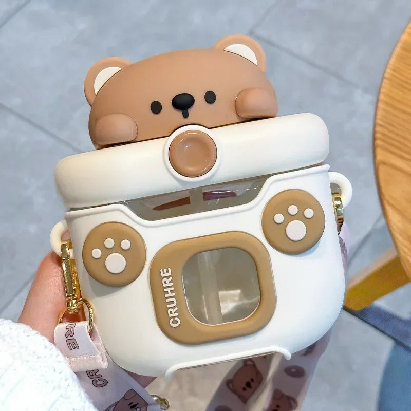 β¨ Cute Bear Water Bottle π 550ML Straw Cup for Kids π Fun Drinking Companion! π»π§