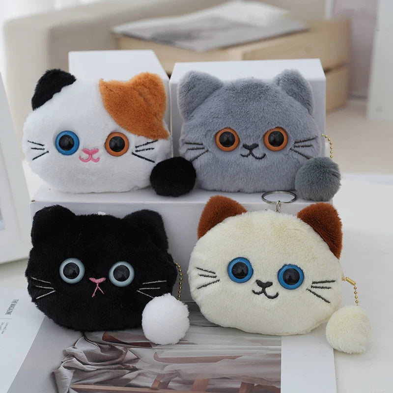 Kawaii Cartoon Cute Cat Coin Purse Keychain Pendant Creative Plush Animal Cat Storage Bag Children Mini Coin Bag Birthday Gifts