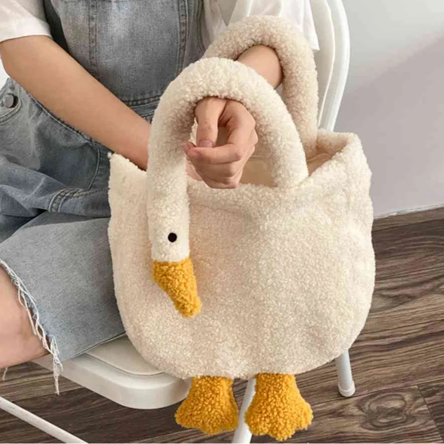 Introducing the Kawaii Goose Plush Handbag - your new cozy companion for winter! This adorable crossbody tote is crafted from soft, high-quality plush fabric, ensuring it's both comfy and cute. Perfect for all your essentials, it features: