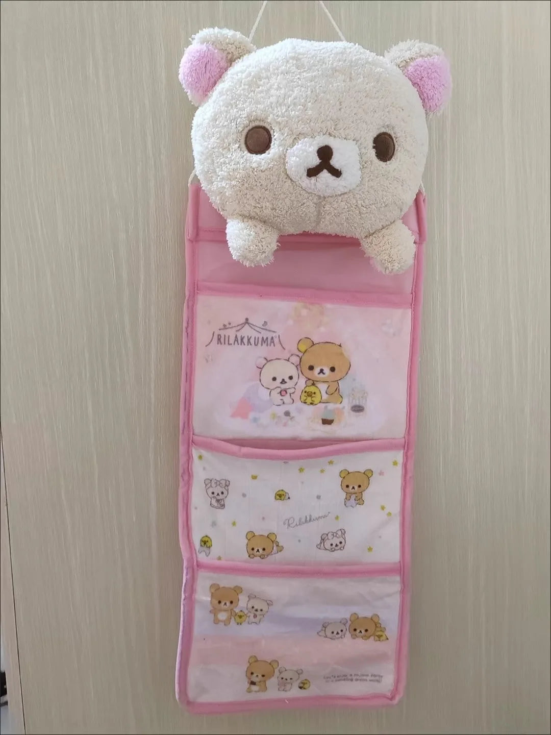 Charming Kawaii Rilakkuma Wall Hanging Storage Bag π»β¨ | Large Capacity Korilakkuma Bear Organizer for Sundries & Gifts ππ